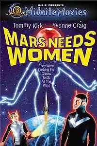 Mars Needs Women is a 1968 independently made American made-for-television science fiction film from Azalea Pictures.[2] The film was produced, written, and directed by self-proclaimed schlock artist/auteur Larry Buchanan, and stars Tommy Kirk, Yvonne Craig, and Byron Lord.[3] The film was released in first-run syndication by American International Pictures without a theatrical release.
