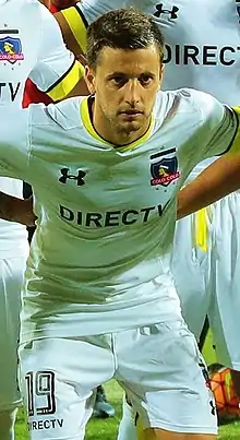 On 21 January 2016, he joined Chilean giants Colo-Colo, being presented the same day alongside his compatriot Matías Zaldivia.[3] In his debut he scored a goal against Peru's Universitario in a 3–3 exhibition match draw at Lima.[4] His competitive debut came on 7 February during a goalless with Deportes Iquique and his first league goal was on 21 February against Unión La Calera, being the only one of the game.[5] On 6 March, he scored his third league goal during the 170th derby between Colo-Colo and Universidad Católica.[6]