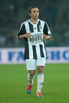 Marta has three siblings, José, Valdir, and Angela. Her parents are Aldário and Tereza. Her father left the family while Marta was a baby.[77] On 11 October 2010, Marta was named a UN goodwill ambassador.[78] Marta is fluent in Portuguese, Swedish and English.[79] She is a Catholic and states that God is very important to her, although she does not go to church often.[80] In 2016, she was listed as one of BBC's 100 Women.[81]