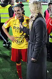 The 2008 season saw Umeå and Marta win another Swedish championship title. After the end of the season, speculation arose concerning the future of Marta and a couple of months later, on the day of the FIFA World Player of the Year Awards in January 2009, Marta announced that she would play for the American side Los Angeles Sol for the next three years.[16] At the request of Marta, the Los Angeles side also purchased Johanna Frisk from Umeå IK,[17] which led to a report by Swedish TV4 sports presenter Patrick Ekwall that Marta and Frisk were a lesbian couple.[18] Both players denied this to be true.[19]