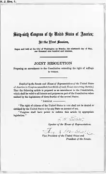 - ↑ National Archives and Records Administration (8 February 2022). "19th Amendment to the U.S. Constitution: Women's Right To Vote (1920)". National Archives. Retrieved 2022-04-27.