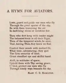 - ↑ Parry, C. Hubert H.; Hamilton. "A hymn for aviators / the words by Mary C.D. Hamilton; the music by C. Hubert H. Parry". library.si.edu. Retrieved 27 March 2019.