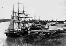 The Port of Maryborough was opened in 1847 and in 1859 it was declared a port of entry. In 1856, after the river became unnavigable to larger vessels a new township and port were established. From the 1850s to the end of the century the port was one of Australia's busiest immigration ports.[22] Some authorities called the port "Wide Bay" well into the 1860s.