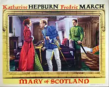 Mary of Scotland is a 1936 American historical drama film starring Katharine Hepburn as the 16th-century ruler Mary, Queen of Scots.[3][4] Directed by John Ford, it is an adaptation of the 1933 Maxwell Anderson play, with Fredric March reprising the role of Bothwell, which he also performed on stage during the run of play.[5] The screenplay was written by Dudley Nichols. Ginger Rogers wanted to play this role and made a screen test, but RKO rejected her request to be cast in the part[6] feeling that the role was not suitable to her image.