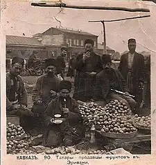 - 1 2 3 4 Before 1918, Azerbaijanis were generally known as "Tatars". This term, employed by the Russians, referred to Turkic-speaking Muslims of the South Caucasus. After 1918, with the establishment of the Azerbaijan Democratic Republic and "especially during the Soviet era", the Tatar group identified itself as "Azerbaijani".[1][2]