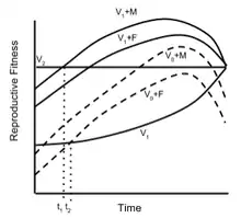 - V1: reproductive success obtained when only one parent cares for the young (for the purpose of simplicity, model assumes that V1 is the same for both male-only and female-only care)