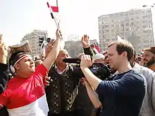 ![]() O'Neill filming in Tahrir Square in 2011 | |