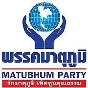 The Matubhum Party (Thai: พรรคมาตุภูมิ, Phak Matubhum, English: Motherland Party) is a minor political party in Thailand, founded in November 2008. It mainly represents the interests of the Muslim minority in Thailand Southern provinces. It is led by General Sonthi Boonyaratglin.