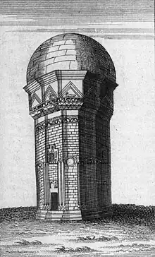 John Buchan Telfer wrote in his 1876 book: "Near the hamlet of Djafarabad is a circular brick erection like a tower, said to be the remains of a monument raised by the Persians to commemorate a victory."[10]