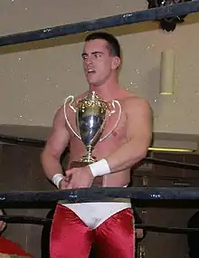 ![]() Boyer in February 2007, holding the Chikara Young Lions Cup | |