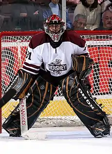 Maxime Ouellet (born June 17, 1981) is a Canadian former professional ice hockey goaltender who played in the National Hockey League (NHL) for the Philadelphia Flyers, Washington Capitals and Vancouver Canucks from 2000 to 2006. He also played several years in the American Hockey League, retiring in 2009. Internationally he played for the Canadian national junior team at both the 2000 and 2001 World Junior Championships, winning a bronze medal each year.