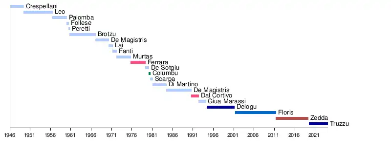10 | Franco Murtas | 1972 | 1975 | Christian Democracy |