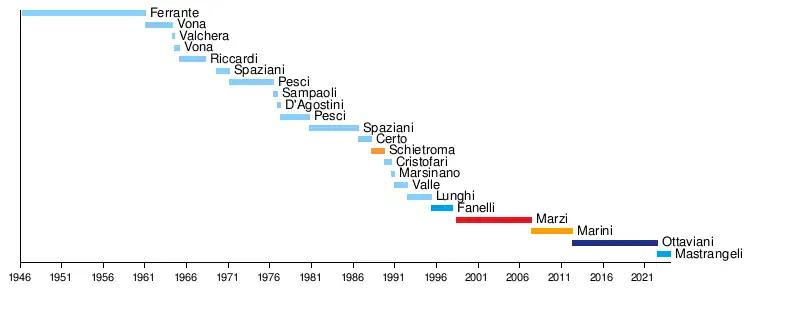 19 | Riccardo Mastrangeli | 29 June 2022 | Incumbent | Forza Italia |