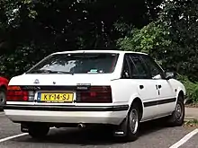 The second-generation rear-wheel drive Capella was available between October 1977 and 1982, in both sedan and coupé forms.[4] It was known on export markets as the 626, with the exception of the United Kingdom, where the vehicle was called the Mazda Montrose, the name being changed to honor the local Mazda dealership in Montrose. The Montrose was offered as an alternative to the Ford Cortina, which was popular at the time. It was released in 1978, although the model's introduction to most markets was delayed until 1979. Early models had two slightly different frontal treatments. Models equipped with 1.6 or 1.8-liter engines came with a more pronounced sloping grille and models with the 2-liter engine came with a more flush grille.[5] A bolder front and rear facelift, though similar in appearance, was carried out in September 1980 but this model was not sold in the UK, where the Montrose's styling remained unchanged.[6] It was, however, offered in the rest of Europe and this and later generations were particularly popular in Germany. This Capella was designed with more concern for aerodynamics and achieved a Cx value of 0.38.[4]