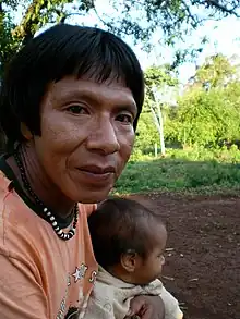Although they are now known by the name "Mbyá," they refer to themselves as the "Nhandeva," a word that means "us" or "our people," which is also the name used internally by various other Guaraní peoples.[5] Another such group, often referred to by ethnographers as the Nhandeva, is called "Chiripá" by the Mbyá, and the two groups each claim exclusive status as the true Guaraní.[7]