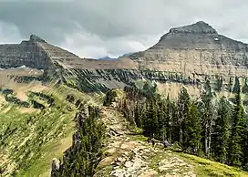 Like other mountains in Glacier National Park, the mountain is composed of sedimentary rock laid down during the Precambrian to Jurassic periods. Formed in shallow seas, this sedimentary rock was initially uplifted beginning 170 million years ago when the Lewis Overthrust fault pushed an enormous slab of precambrian rocks 3 mi (4.8 km) thick, 50 miles (80 km) wide and 160 miles (260 km) long over younger rock of the cretaceous period.[4]