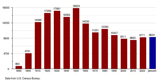 - ↑ Forstall, Richard L., ed. (April 20, 1995). "Population of Counties by Decennial Census: 1900 to 1990". United States Census Bureau. Retrieved February 1, 2015.