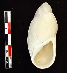 Apertural view of an empty shell of Megalobulimus jaguarunensis | |