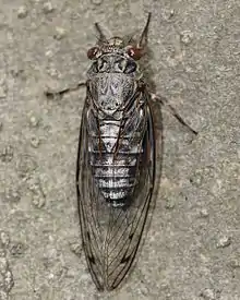 Meimuna opalifera known in Japan as tsuku-tsuku-bōshi (ツクツクボウシ) due to its song, is a cicada. In Japan, it emerges in July and is no longer seen by about October.