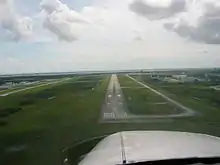 Melbourne Orlando International Airport (IATA: MLB, ICAO: KMLB, FAA LID: MLB) is a public airport 1.5 miles (2.4 km) northwest of downtown Melbourne, in Brevard County, Florida, United States, and 50 miles (80.5 km) southeast of Orlando, located on central Florida's Space Coast. The airport is reached by NASA Boulevard (State Road 508). It is governed by a seven-member board which is appointed by the Melbourne City Council and the private sector. The airport budget is part of the Melbourne municipal budget; the airport receives no local tax dollars. The projected expenses for 2010 were $14.1 million.[2] The executive director of the airport is Greg Donovan, A.A.E.[3]