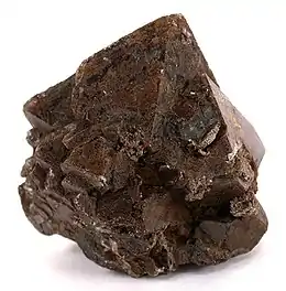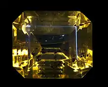 It is a translucent honey-coloured crystal which can be polished and faceted to form striking gemstones. It crystallizes in the tetragonal system and occurs both in good crystals and as formless masses. It is soft with a Mohs hardness of 2 to 2.5 and has a low specific gravity of 1.6.[2][4]