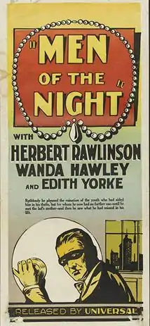 Men of the Night is a 1926 American silent crime film directed by Albert S. Rogell and starring Herbert Rawlinson. It was produced and distributed by independent film producer Sterling Pictures.[1]