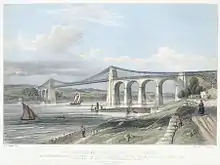 ![]() The Menai Suspension Bridge viewed from the Anglesey side | |
