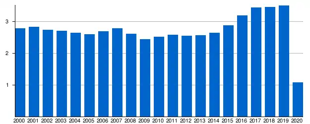 In 2016, for the first time, the annual passenger volume processed through the airport exceeded 3 million.[1]
