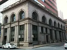 The Merchants' National Bank Building (1895), Baltimore was a historic bank building at 301 Water Street, at the corner of South Street, in Baltimore, Maryland. It was a 7-story, Renaissance Revival style building designed by the Baltimore-based architectural firm of Baldwin & Pennington, and constructed in 1893-1895. Johns Hopkins, a Baltimore businessman, abolitionist, and philanthropist, had been president of the bank from 1853 until his death in 1873.[2][3]