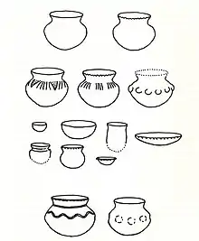 Several pottery types from different time periods were present. Some of them are listed below:[2]