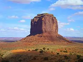 Merrick Butte is a butte located in Monument Valley[3] and is part of the Monument Valley Navajo Tribal Park, similar to its neighbors West and East Mitten Buttes just to the north.[4] It was named after silver miner Jack Merrick, killed by Indians in 1880.