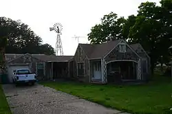 The Merritt House is a historic house at 139 North Broadview in Greenbrier, Arkansas. It is a single story wood-frame structure, finished with a masonry veneer, with an irregular plan featuring a variety of roof gables. The exterior is finished in sandstone with cream-colored brick trim. The main entrance is set under a deep front porch, whose front has a broad flat-topped arch, with a gable above that has a louver framed in brick. The house was built by Silas Owen, Sr., a local master mason, in 1948 for Billy Merritt. It was built using in part stone from a house built by Owen for Merritt's father, which had recently been torn down.[2]