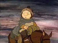 In Ralph Bakshi's 1978 animated version of The Lord of the Rings, Merry was voiced by Simon Chandler.[12] In the 1980 Rankin/Bass animated version of The Return of the King, made for television, the character was voiced by the radio personality Casey Kasem.[13] In the 1981 BBC radio serial of The Lord of the Rings, Merry was played by Richard O'Callaghan.[14] He was portrayed by Sergey Shelgunov in the 1991 Russian television play Khraniteli,[15] and by Jarmo Hyttinen in the 1993 Finnish miniseries Hobitit.[16] In Peter Jackson's 2001–2003 film trilogy adaptation of the books, Merry was portrayed by Dominic Monaghan as a cheerful prankster full of fun and practical jokes.[17]