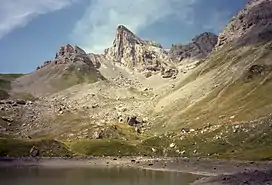 ![]() Mesa de los Tres Reyes viewed from Lac de Lhurs. | |