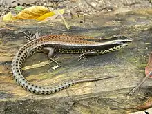 The Mayan black-headed skink or Schwartze's skink (Mesoscincus schwartzei) is an extant species of skink, a lizard in the family Scincidae. The species is found in Mexico, Belize, and Guatemala.[2]