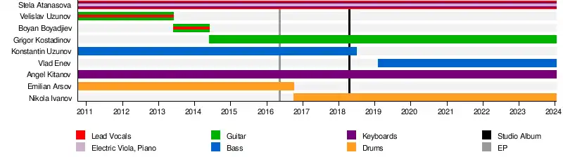 - Stela Atanasova – Lead vocals, Electric Viola, Keyboards, Piano (2010–present)
