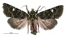 Meterana meyricci, also known as the rose underwing owlet,[3] is a species of moth in the family Noctuidae.[4] It was described and named by George Hampson in 1911 as Miselia meyricci.[5] It is endemic to New Zealand[2] and has been collected in and around Otago.[6] The larvae of this species feed on Pimelea species,[6] including Pimelea poppelwellii.[7] Adults tend to found on the wing during the months of January to March.[6]