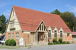 The First United Methodist Church, once the Methodist Episcopal Church, South, is a historic church at Main and Center Sts. in Bald Knob, Arkansas. It is a single story frame structure, finished in brick, that was built in 1927 with a distinctive blend of Craftsman and Tudor Revival elements. Its gable end is finished in half-timbered stucco, with a projecting bay of diamond-pane windows.[2]