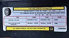 - ↑ "49 CFR 571.110 – Tire selection and rims and motor home/recreation vehicle trailer load carrying capacity information for motor vehicles with a GVWR of 4,536 kilograms (10,000 pounds) or less". United States Department of Transportation Regulations. S4.3 (a) – via Cornell Law School Regulation References.