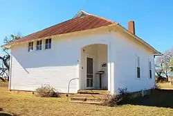 Four buildings have served as the school. Erected on land owned by local resident Fritz Lochte, the original structure was a 96 square feet (8.9 m2) shingle-roofed log cabin. In the post-Civil War years, enrollment included students whose parents had been slaves on an area cotton plantation.[3][4] On the same property, the log cabin was replaced by a larger stone structure in the 1880s. In 1897, local resident Louis Bonn deeded an acre of his land over to the school. A new 1-1/2 story frame structure was erected to house the school. The current building was the fourth building to serve as the school. It was erected in 1931.[2][5]