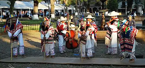 Instruments used to accompany the dancers have changed to include those from Europe, but pre Hispanic ones, especially drums and flutes, are still used.[4] However, as many dances are still tied to religious events, knowing how to play the traditional songs and dance the traditional dances still gives dancers and musicians social stature, as they are keepers of tradition and expected to pass it along to the next generation.[8]