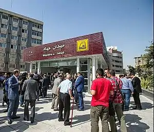 Meydan-e Jahad Metro Station is a station in line 3 of the Tehran Metro.[1][2] It is located at the intersection of Valiasr Street and Fatemi Street. The station was planned to be named "Meydan-e Jahad" prior to opening, however, just one day after the official opening, the name was changed "Shohada-ye Resaneh" for the first two months of its operation. However, due to popular complaints about the new name not being reflective of any nearby geographical feature, and the name being unfamiliar to most users, the name was reverted to the initially planned name. This name change cost the Metro Organization about 2 billion tomans.