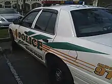 Miami-Dade Police officers wear taupe/brown uniforms. Their vehicles are green and white.[4]