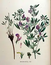 - "Lucern grows naturally with one large perpendicular, or tap-root, which penetrates very deep into the earth, and has few, if any, lateral roots. From similar experiments on other tap-rooted plants, I was induced to think, that this too, by transplanting it, and at the same time cutting off part of its tap-root, might be made to shoot out several horizontal roots, which, reaching into the loose mould of the alleys, and extending themselves there, would collect a greater quantity of nourishment for the plant, and consequently enable it to produce more abundant crops."[17]