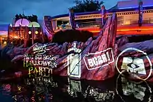 The nighttime fireworks show, presented in lieu of the regular nightly show, Happily Ever After and the similarities of Disney Enchantment, is titled Disney's Not So Spooky Spectacular!, which debuted in August 2019.[8] The show features fireworks, projection mapping, lasers, and searchlights at Cinderella Castle, with the exception of Main Street, U.S.A., and stars Jack Skellington, Mickey Mouse, Minnie Mouse, Donald Duck, and Goofy.[9]