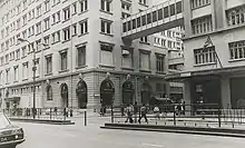 The eastern end of Middle Road was once dominated by the 10-storey Middle Road Multi-storey Car Park, which upon opening on 11 January 1965 was the largest multi-storey car park in Hong Kong.[6][7] The car park stood directly over part of Middle Road, and was home to the Yau Tsim District Office before Yau Tsim and Mong Kok districts merged. In 2014, the government put the site, which was rezoned for commercial use, up for auction.[8] The car park ceased operation in July 2014.[9] In September 2014, it was announced that developer Henderson Land had won the site with a HK$4.7-billion bid.[10] Henderson Land built a commercial tower called "H Zentre", which unlike the old car park is not built overtop of Middle Road.