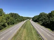 Interstate 295 is the most prominent highway traversing Middletown Township. It follows a generally south-to-north alignment across eastern portions of the township. U.S. Route 1 also traverses the township as a freeway, following a southwest-to-northeast alignment through the center of the township. U.S. Route 1 Business follows the Lincoln Highway parallel and to the south of the US 1 freeway. Pennsylvania Route 213 follows Maple Avenue along an east-west alignment through the center of the township, terminating at US 1 Business near the east edge of the township. Pennsylvania Route 332 briefly enters the northern edge of the township along the Newtown Bypass. Pennsylvania Route 413 follows a generally southeast-to-northwest alignment through the center of the township, utilizing several roadways. Finally, Pennsylvania Route 513 briefly enters the township as it travels between Penndel and Hulmeville.