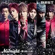 "Midnight" (Korean: 별 헤는 밤; RR: Byeol Heneun Bam; Japanese: 星を数える夜; Hepburn: Hoshi o Kazoeru Yoru) is a song by the South Korean boy band Beast. It was released digitally in South Korea on July 15, 2012 as a pre-release single[1] of the group's fifth mini album Midnight Sun, released a week after.[2] The song was later re-recorded in Japanese and was used as the group's third Japanese single, released on October 17, 2012.[3]