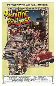 Midnight Madness is a 1980 American comedy film produced by Walt Disney Productions and starring David Naughton, Stephen Furst, Eddie Deezen, and Maggie Roswell.[3][4]