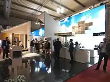 The current show occupies an area of nearly 230,000 square metres (2,500,000 sq ft), and includes 2,500 companies, along with 700 young designers at the SaloneSatellite,[3][6] a secondary exhibit which was founded in 1998 by Marva Griffin at the request of Cosmit managing director Manlio Armellini.[7][8] This parallel exhibition features young and emerging designers, collaborations with universities and design schools, and aims "to enhance links between research, design and industry, focusing on designers under the age of 35."[9][10][11]